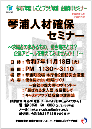 琴浦町内の事業所を対象とした人材確保セミナーを開催します。