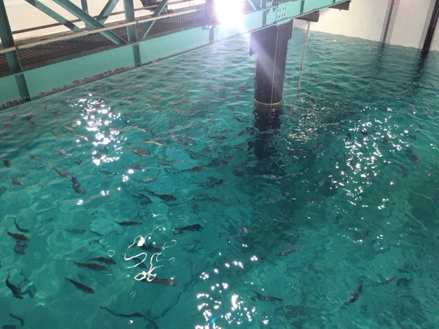 グランサーモンは大きく育ってくると、順番に水槽をお引っ越ししていきます。一番大きく育った魚は出荷専用の水槽へ。 まだ成長途中の魚たちは、サイズごとに分けてそれ...